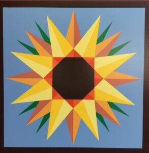 Sunflower Barn Quilt Sky Blue background